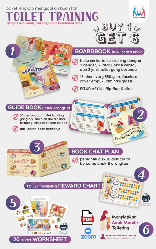 Terdiri dari 30 pertanyaan toilet training hasil survei ke seluruh AyahBunda se-Indonesia yang dijawab oleh psikolog klinis anak, dokter anak dan ustadz β¨